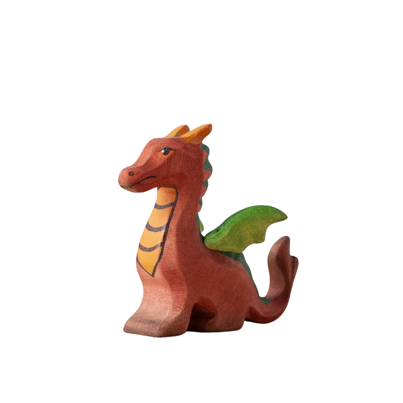 It's smaller scale and playful features make it perfect for younger children or as a companion in fantasy-themed scenes. Handcrafted with care and painted in non-toxic hues, the Baby Dragon is a delightful addition to any storytelling collection rooted in open-ended play.