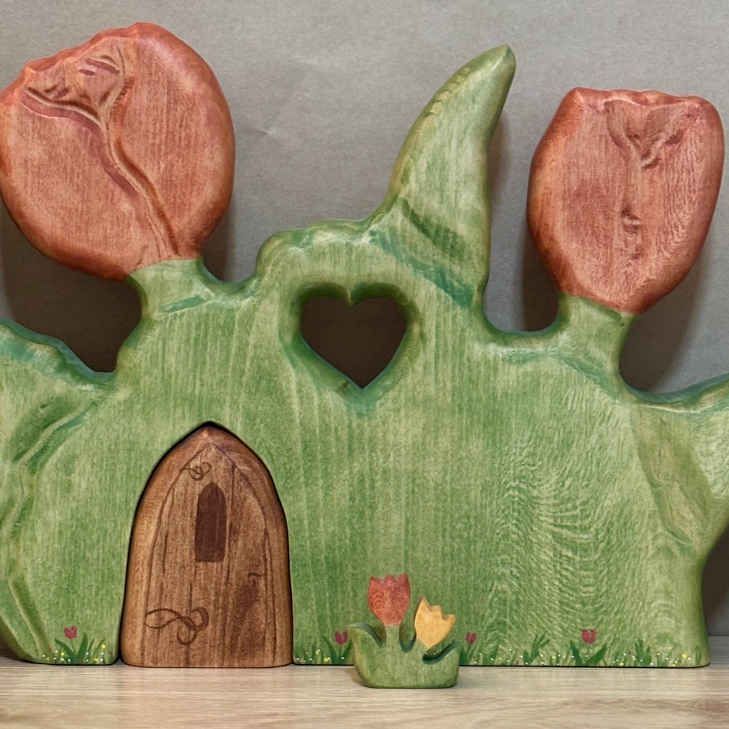 Each piece celebrates the warmth and character of handmade craftsmanship, inviting little hands to explore, and create their own enchanted scenes and stories. A timeless, heirloom piece, these wooden tulips are designed to spark creativity and be treasured for many years to come.