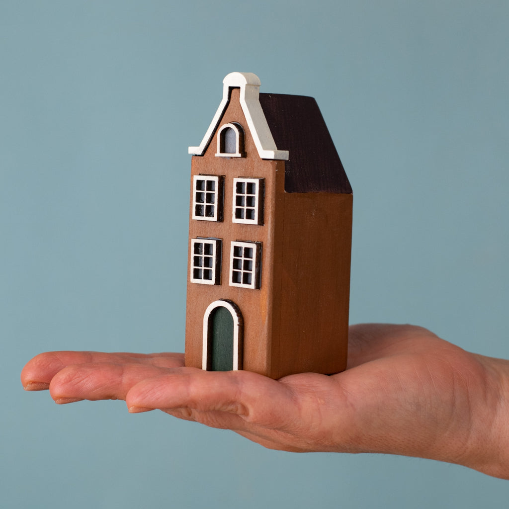 The Leiden House tells stories of cobbled alleys, flowered windows, and gentle canal reflections. Hand carved from solid wood and painted in soft brown tones, it brings charm, romance, and a touch of Dutch beauty to every display.